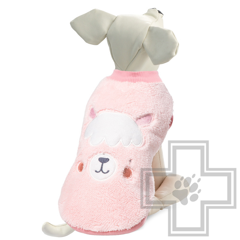 Флисовая толстовка «Альпака» для комфортных прогулок в прохладную погоду. Изделие украшено забавной вышивкой с апликацией на спинке. На рукавах и на поясе предусмотрены удобные резинки, фиксирующие изделие на лапах животного, а универсальный фасон не стесняет движений питомца во время прогулки. Толстовка надевается через голову.