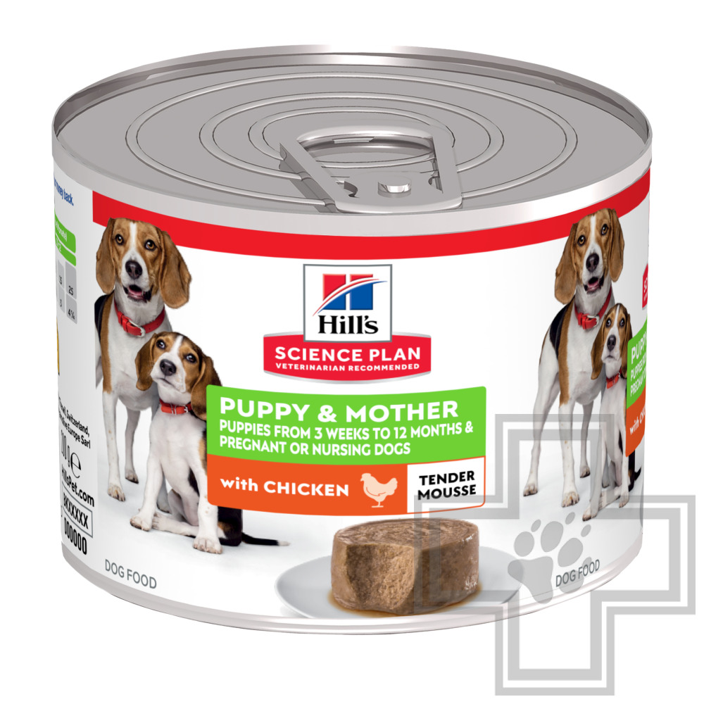 Hill's (Хиллс) Science Plan Puppy & Mother — нежный мусс с курицей для поддержки иммунной системы щенков, а также беременных и кормящих собак. Он содержит необходимое количество питательных веществ для первых шагов в жизни.