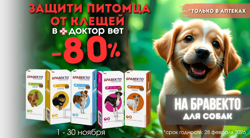 Бравекто Таблетки от блох и клещей (цена за 1 таблетку)Выбрать ...ЗаказатьВес животного, кг: