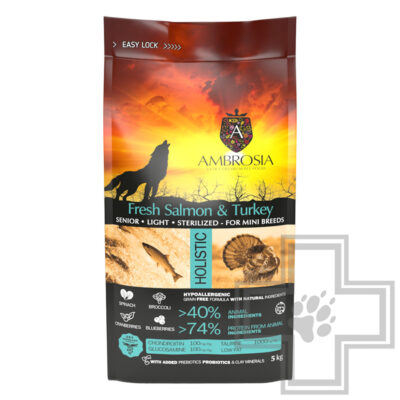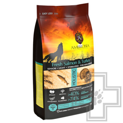 Ambrosia Sterilized Mini Корм для пожилых стерилизованных собак мелких пород, с лососем и индейкой
