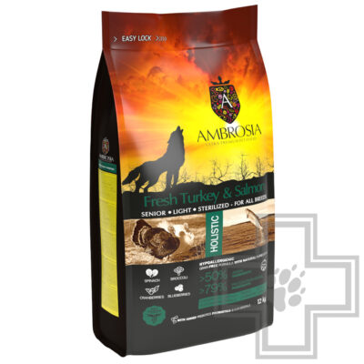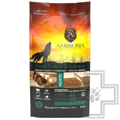 Ambrosia Sterilized All Breeds Корм беззерновой для пожилых собак всех пород, с индейкой и лососем
