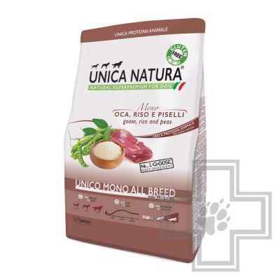 Unica Natura Mono Корм для собак средних и крупных пород, с гусем, рисом и горохом