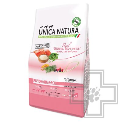 Unica Natura Maxi Корм для собак средних и крупных пород с лососем, рисом и горохом