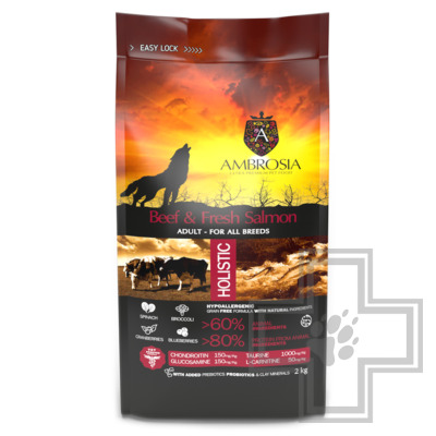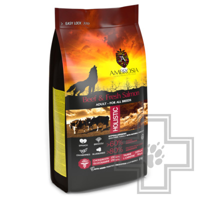 Ambrosia Adult All Breeds Корм беззерновой для взрослых собак всех пород, с говядиной и лососем