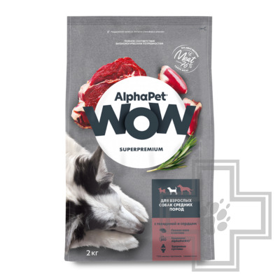 AlphaPet WOW Корм для взрослых собак средних пород, с говядиной и сердцем