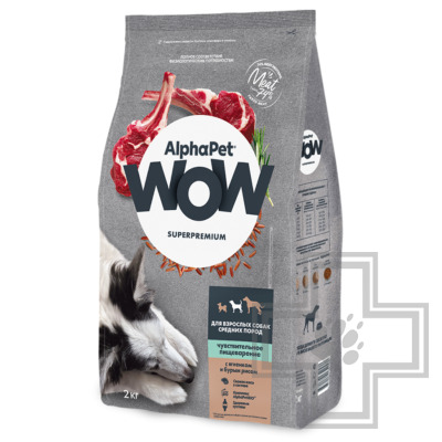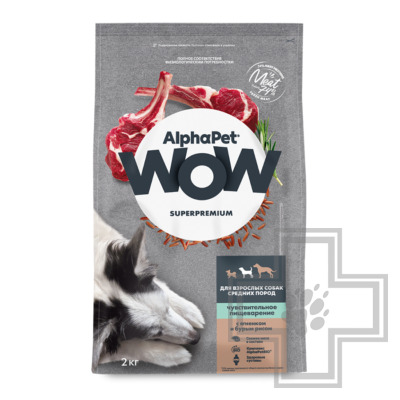 AlphaPet WOW Корм для взрослых собак средних пород с чувствительным пищеварением, с ягненком и рисом
