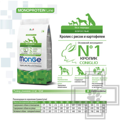 Monge Monoprotein Корм для взрослых собак всех пород, с кроликом и картофелем