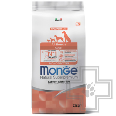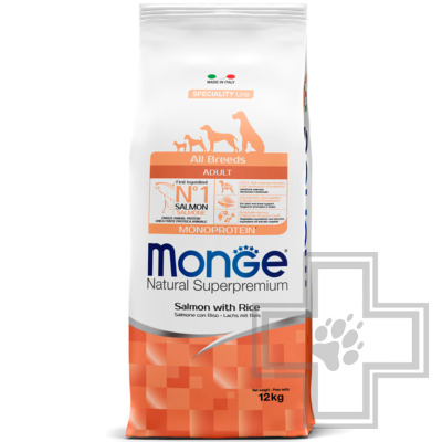 Monge Monoprotein Корм для взрослых собак всех пород, с лососем и рисом