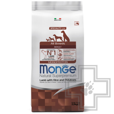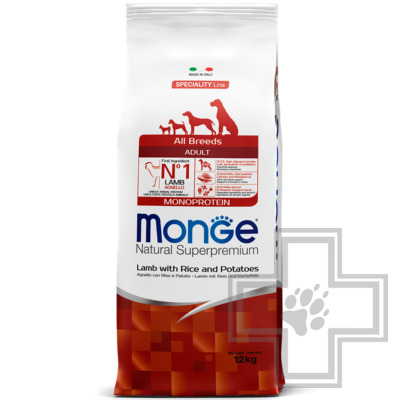 Monge Monoprotein Корм для взрослых собак всех пород, с ягненком, рисом и картофелем