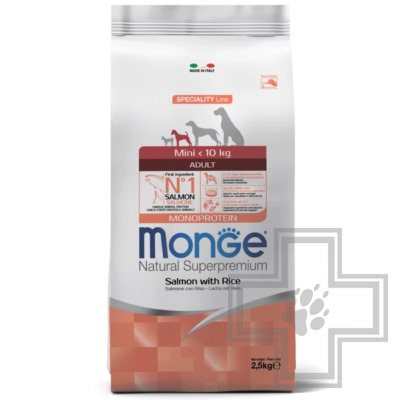 Monge Speciality Line Monoprotein Mini Корм для взрослых собак мелких пород, с лососем и рисом