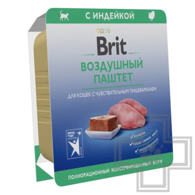 Брит Sensitive Консервы для кошек с чувствительным пищеварением, воздушный паштет с индейкой