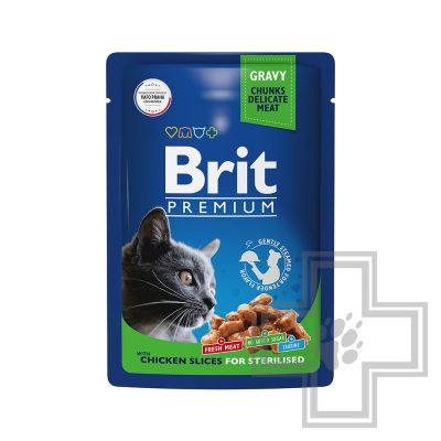 Брит Пресервы для взрослых стерилизованных кошек, с цыпленком в соусе