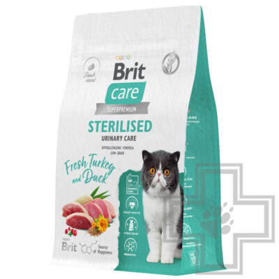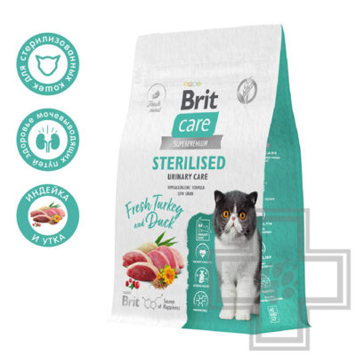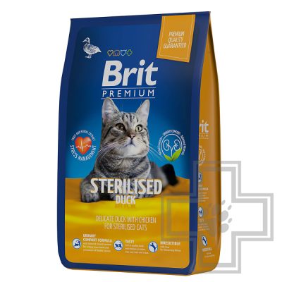 Брит Корм для взрослых стерилизованных кошек, с уткой и курицей