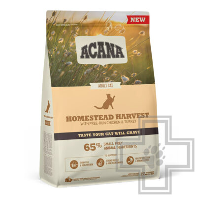 Acana Homestead Harvest Корм низкозерновой для взрослых кошек всех пород, с курицей и индейкой