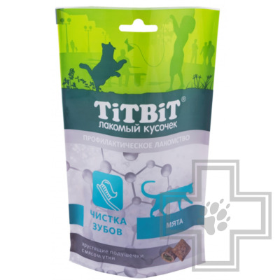 TiTBiT Хрустящие подушечки для чистки зубов для кошек с мясом утки