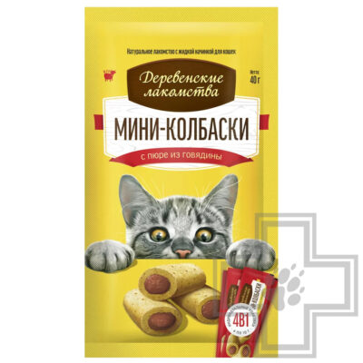 Деревенские лакомства Мини-колбаски с пюре из говядины для кошек