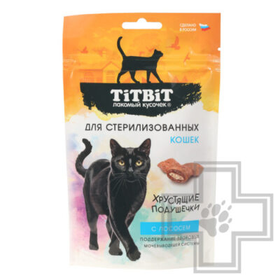 TiTBiT Хрустящие подушечки для стерилизованных кошек с лососем