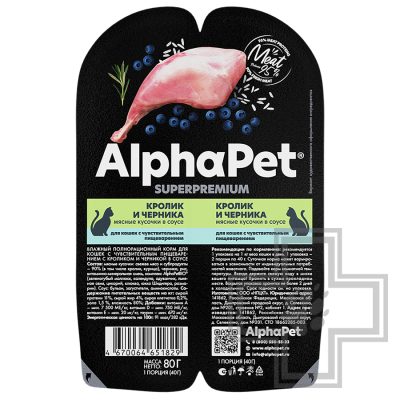 AlphaPet Superpremium Пресервы для кошек с чувствительным пищеварением, кролик с черникой в соусе