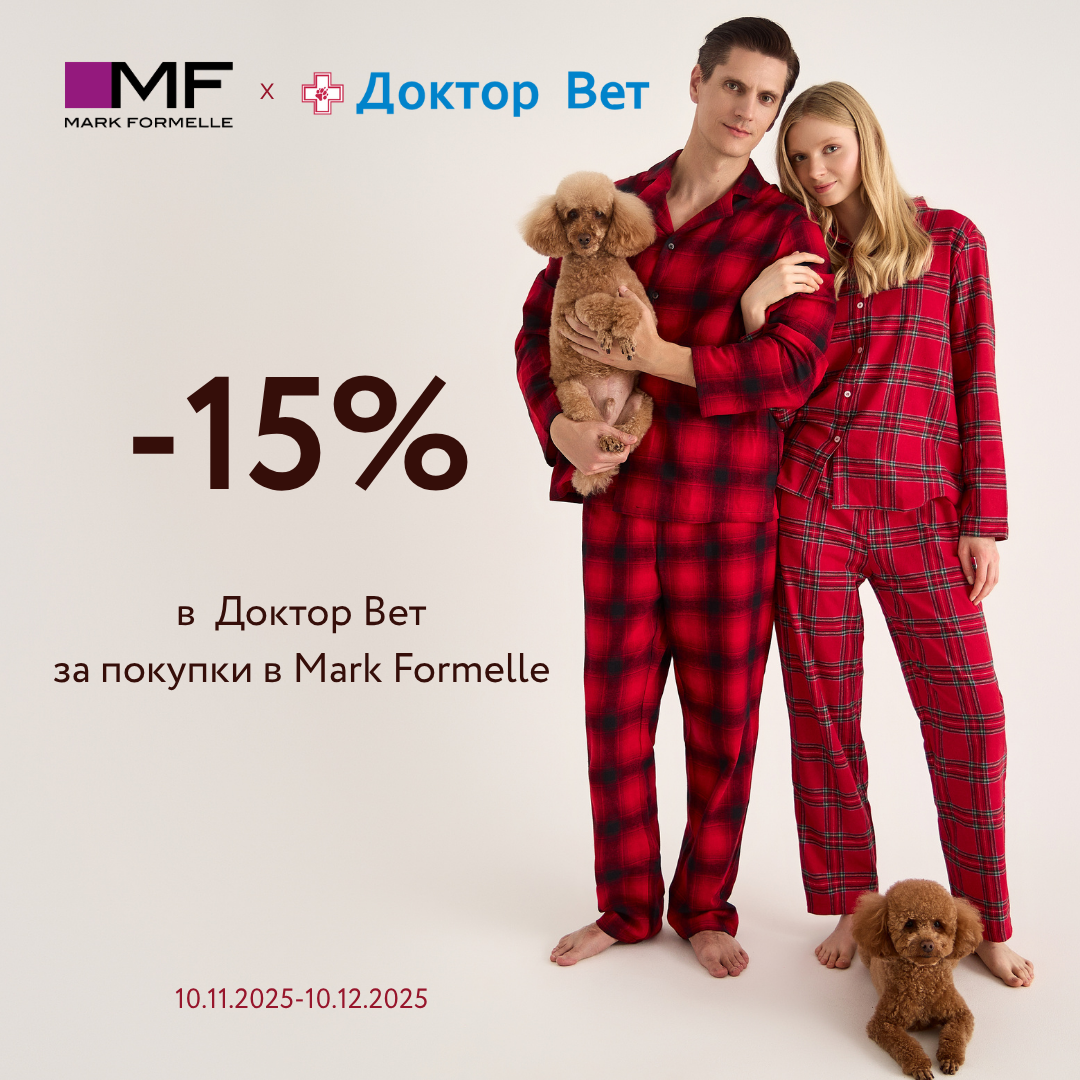 Бренд одежды Mark Formelle дарит всем клиентам сети ветеринарных аптек «Доктор Вет» уникальную возможность обновить гардероб с 10% скидкой!