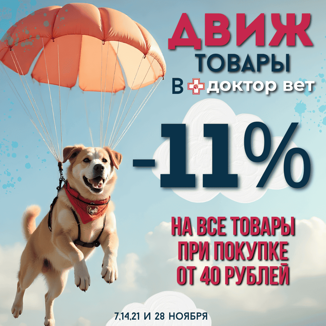 Акционное предложение действует только при покупке товаров в сети ветеринарных аптек «Доктор Вет» и не распространяется на заказы, оформленные в интернет-магазине vetapteki.by.