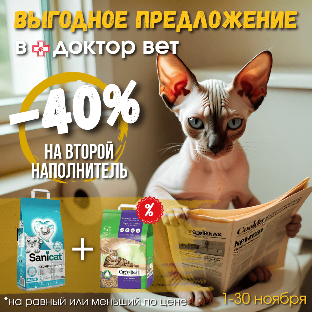 Весь месяц приобретайте наполнитель для кошек и грызунов и забирайте второй (меньший или равный по стоимости) со сидкой 40%!