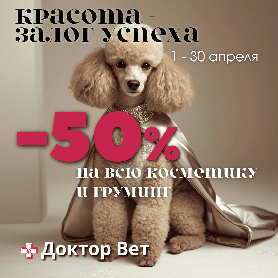 Весь месяц приобретайте товары для красоты для питомцев и груминга со скидкой 50% в аптеках: