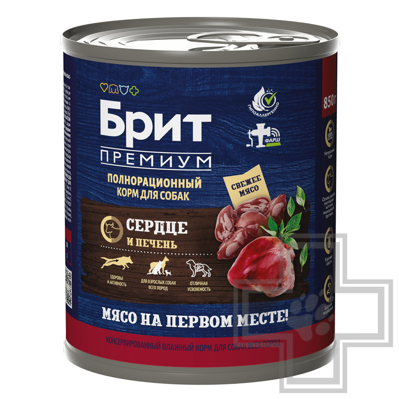 Brit Premium Dog HEART&LIVER (Брит) Полнорационный влажный консервированный корм премиум-класса с сердцем и печенью для собак всех пород.