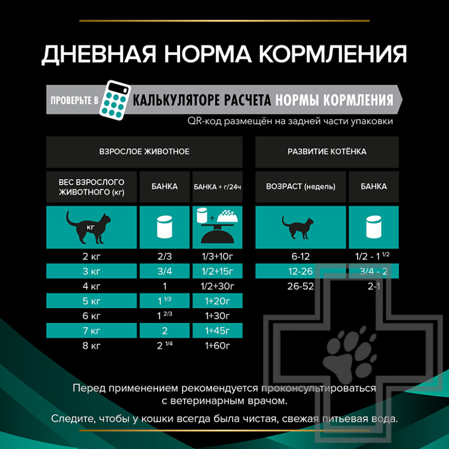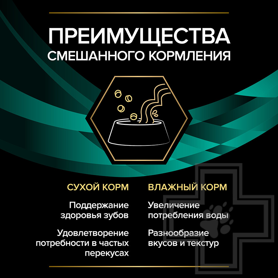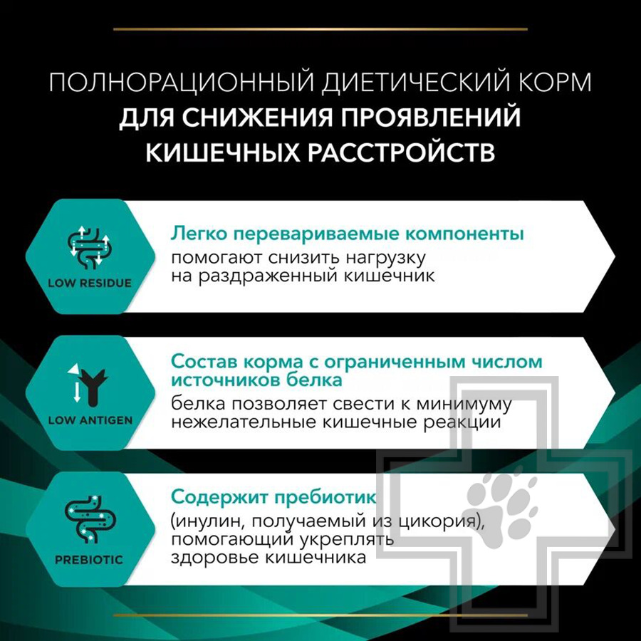 Корм консервированный полнорационный диетический для взрослых кошек и котят при расстройствах пищеварения. Рекомендован для снижения острого нарушения всасывающей функции кишечника, способствует восполнению питательных веществ и выздоровлению. Обладает высокой поедаемостью, с повышенным содержанием натрия и калия, с высокой энергетической ценностью, высокой концентрацией незаменимых питательных веществ и высокоусвояемых ингредиентов. Использование данного корма рекомендовано под наблюдением ветеринарного врача. Подходит для всех пород.