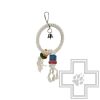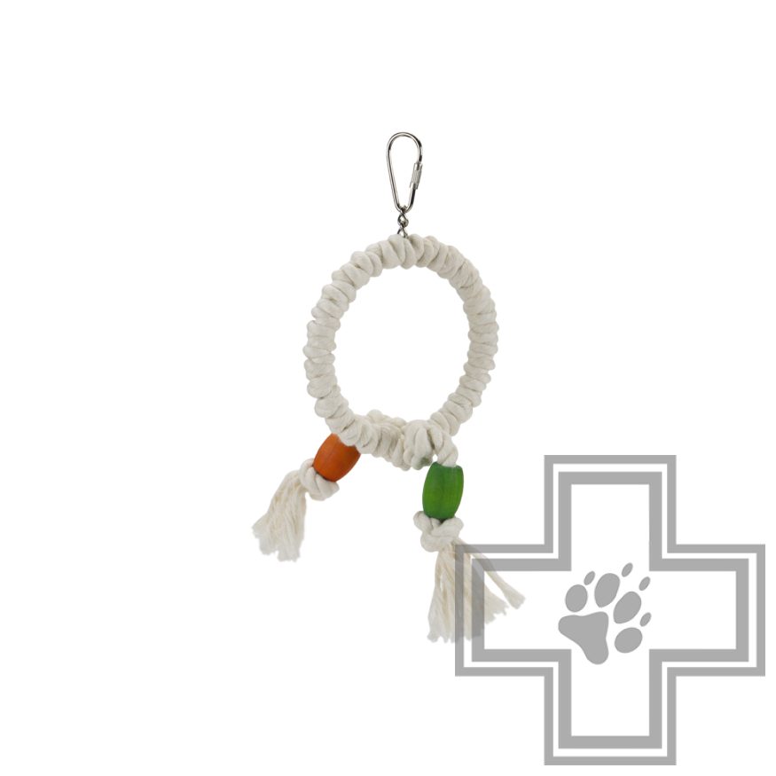 Игрушка для птиц BEEZTEES(Бизтис) Sirko(Сирко) сделана из хлопковых волокон. Внизу кольца концы веревки завязаны в узел и образуют кисточку. Эта простая игрушка безопасна для клюва и лапок вашего питомца. Также подвеска бесшумна — и ее можно оставлять в клетке на ночное время. Рекомендована для какаду и волнистых попугайчиков, но наверняка понравится и другим пернатым.