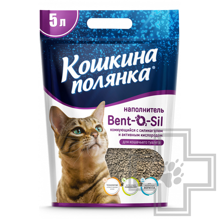 Кошкина полянка Наполнитель Bent-O2-Sil бентонитовый комкующийся, без запаха.
