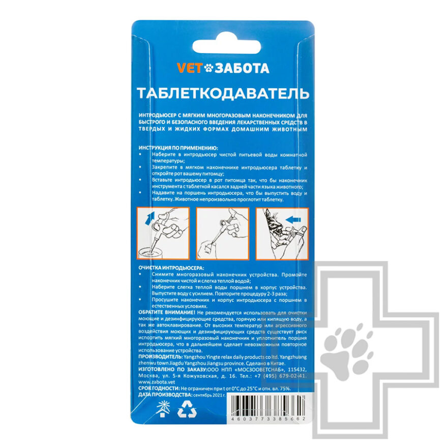 VETЗАБОТА Таблеткодаватель (интродьюсер) для собак и кошек, синий