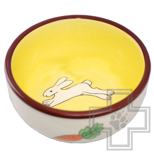№1 Миска керамическая с рисунком «Заяц и морковка» изготовлена из прочного материала, который необычайно долговечен и безопасен для питомца.