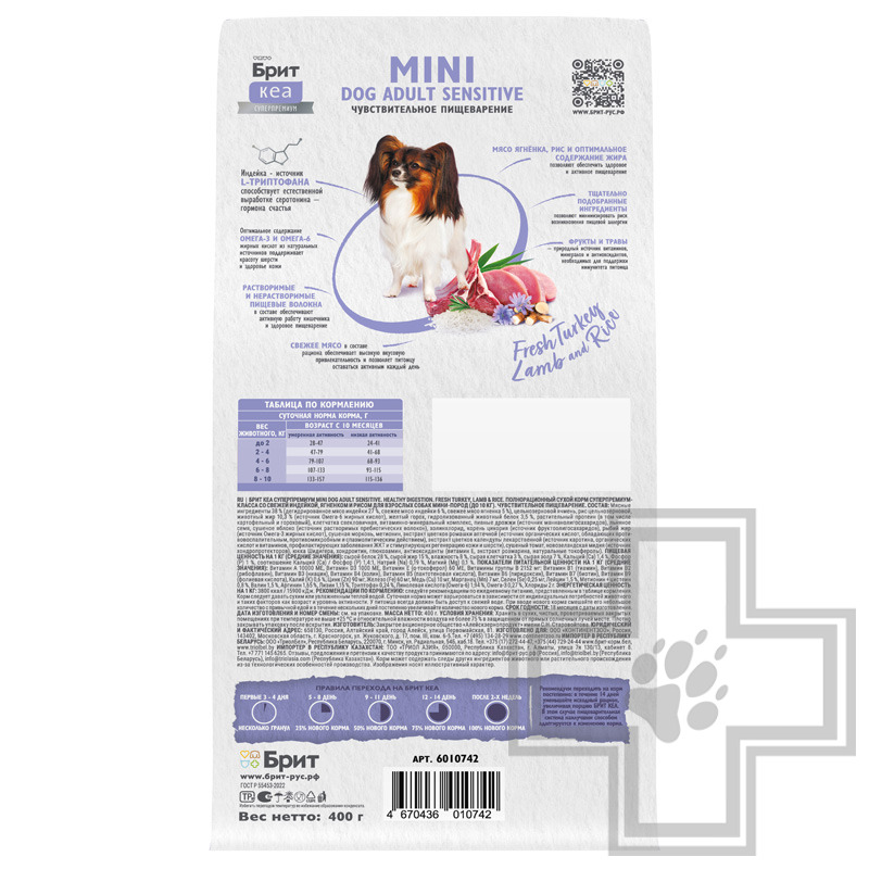 Brit Care (Брит Кеа) Mini Superpremium Dog Adult Sensitive Healthy Digestion — это полнорационный сухой корм суперпремиум-класса, специально разработанный для взрослых собак мини-пород весом до 10 кг с чувствительным пищеварением. Благодаря уникальному составу с индейкой, ягненком и рисом, этот корм легко усваивается и поддерживает здоровье пищеварительной системы. Он идеально подходит для собак с пищевыми аллергиями или непереносимостью определенных ингредиентов, обеспечивая им полноценное и сбалансированное питание.