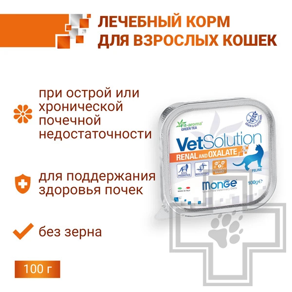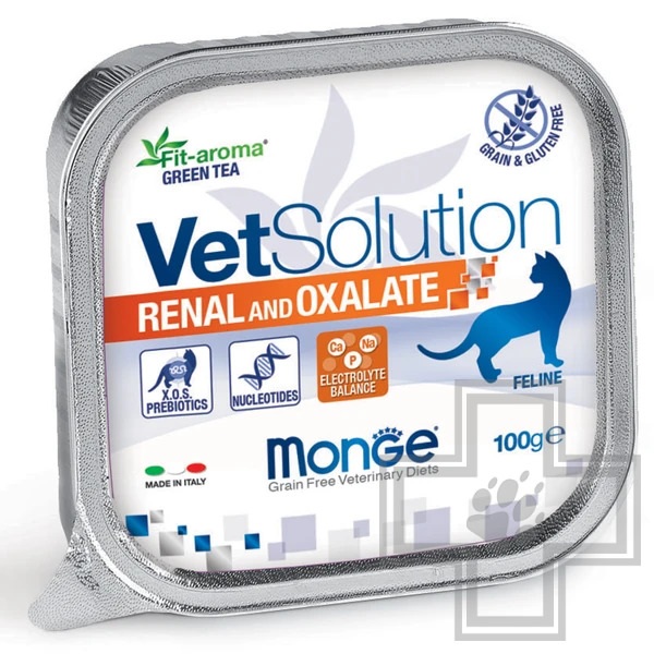 Лечебный корм Monge (Монж) VetSolution Cat Renal and Oxalate Ренал и Оксалат для кошек при хронической почечной недостаточности (ХПН все стадии) и профилактике образования оксалатов 100г.