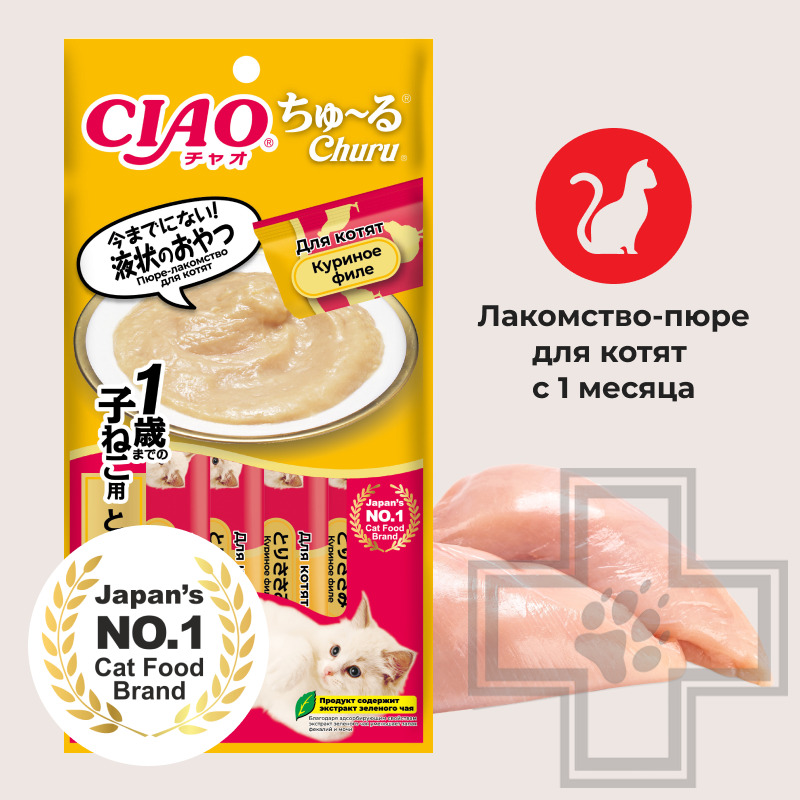 INABA CIAO Churu Функциональное лакомство-пюре для котят, с куриным филе