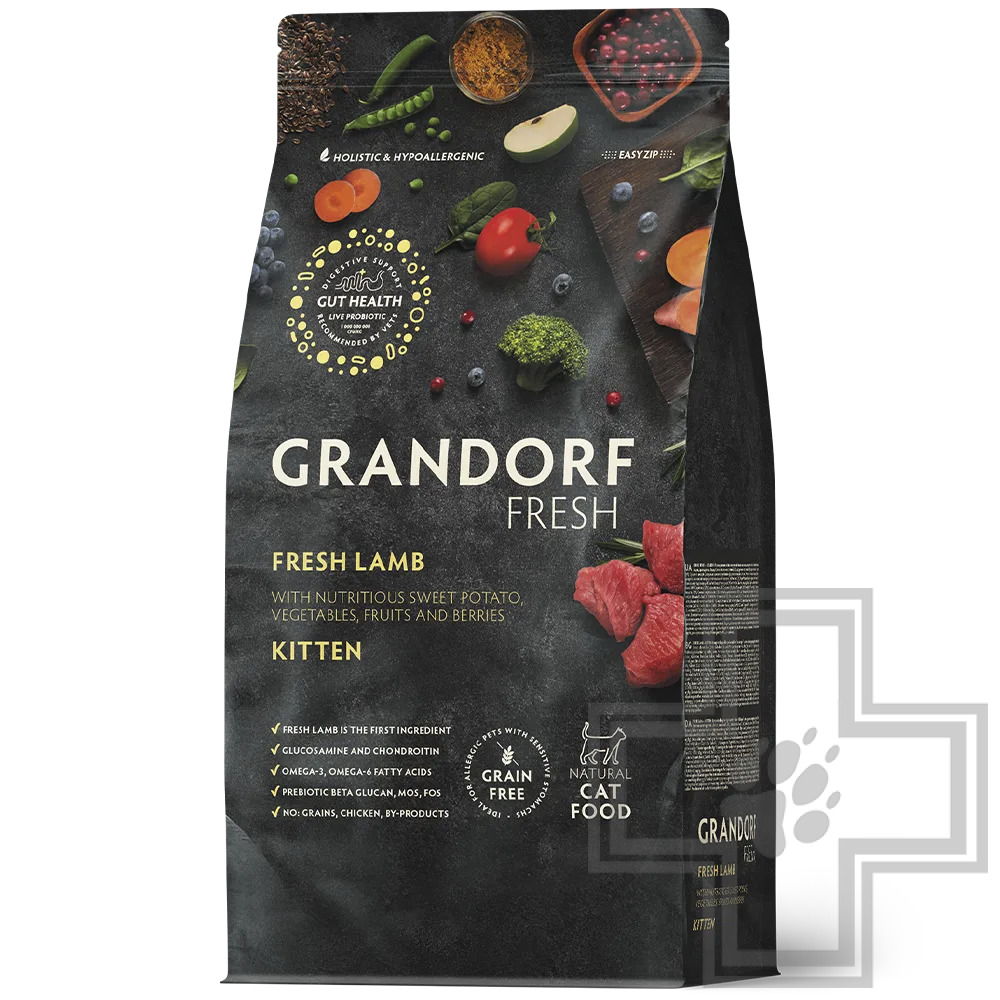 Grandorf (Грендорф) Cat Fresh Kitten Lamb & Sweet Potato (свежее мясо ягненка с бататом) – беззерновой корм с живыми пробиотиками для котят от 3 недель, беременных и кормящих кошек.