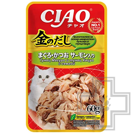 INABA (ИНАБА) CIAO Kinnodashi Пресервы для кошек, с тунцом Магуро, Кацуо и семгой.