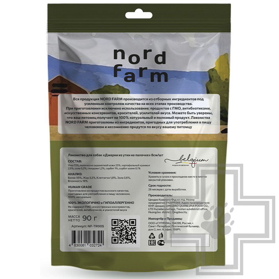 NORD FARM Джерки из утки на палочке для собак всех пород