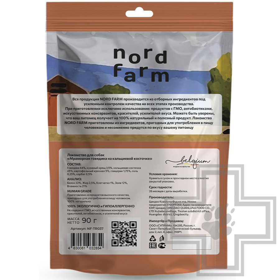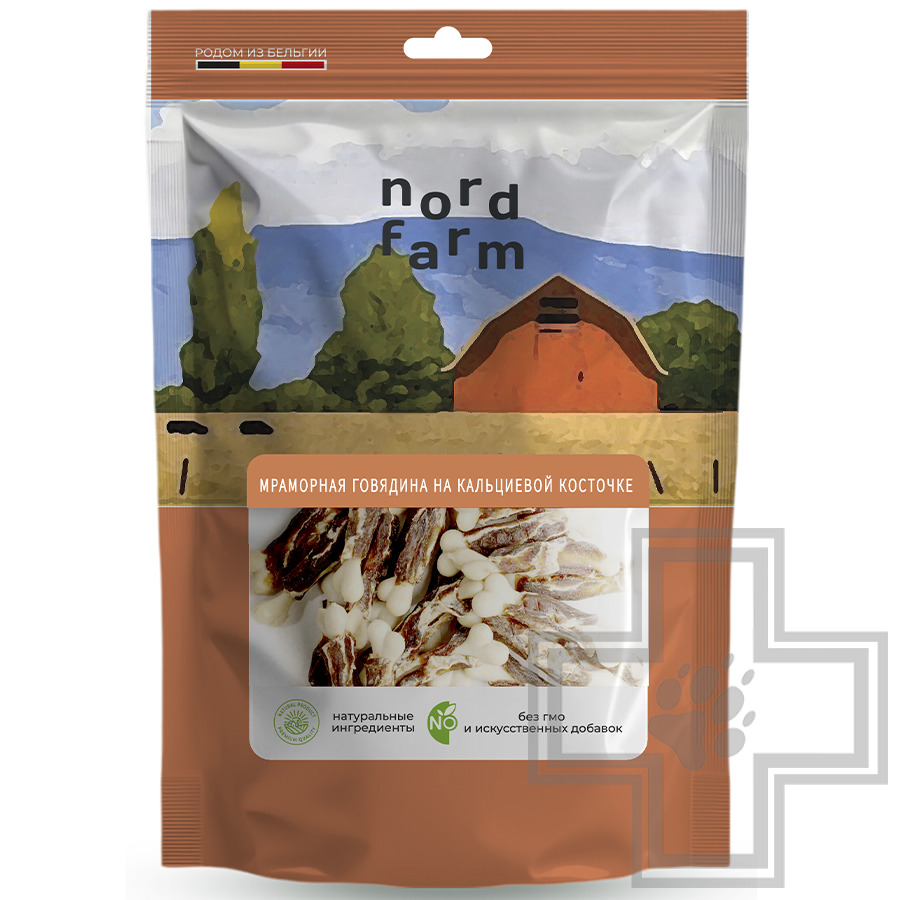 NORD FARM Мраморная говядина на кальциевой косточке для собак всех пород