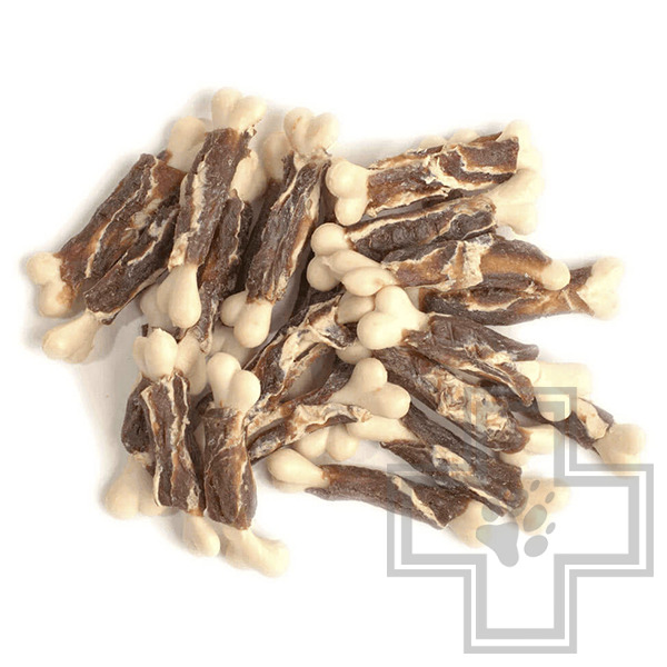 Говядина 44%, куриный хрящ 3,5%, кальциевая косточка 45%, картофельный крахмал 5%, глицерин 1,75%, соль 0,25%, сорбат 0,5% Питательные вещества: Белок 22%, Жир 2,5%, Клетчатка 1%, Зола 12%, Влажность 21%