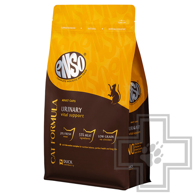 ENSO (Эксо) Cat Formula Urinary – сухой полнорационный корм для взрослых кошек для профилактики мочекаменной болезни кошек со свежей уткой с добавлением брусники.