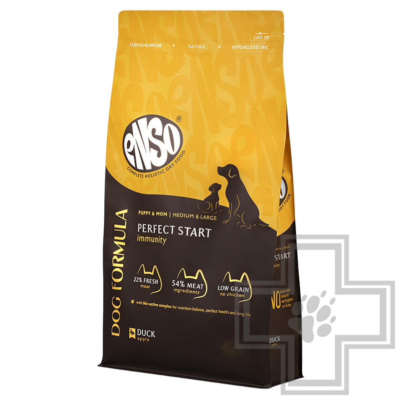 ENSO (Энсо) Dog Formula Perfect Start – сухой полнорационный корм для щенков от 1 месяца, беременных и кормящих собак средних и крупных пород со свежей уткой с добавлением яблок.
