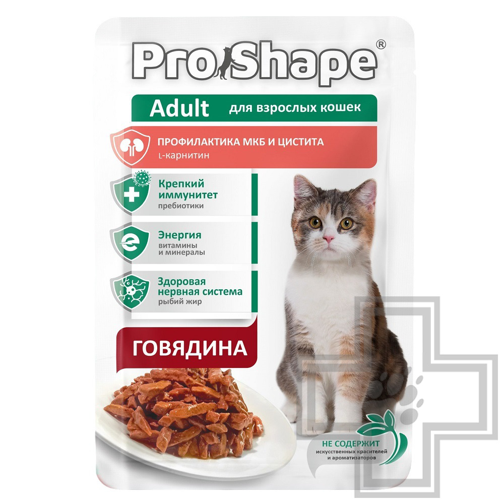 ProShape Adult – консервированный полнорационный корм с говядиной в соусе для взрослых кошек, для профилактики МКБ и цистита.