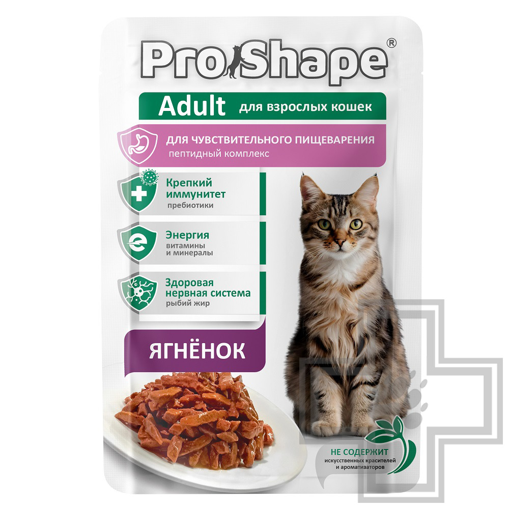 ProShape Adult – консервированный полнорационный корм с ягненком в соусе для взрослых кошек с чувствительным пищеварением.