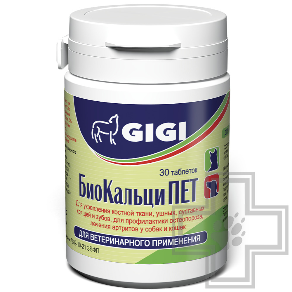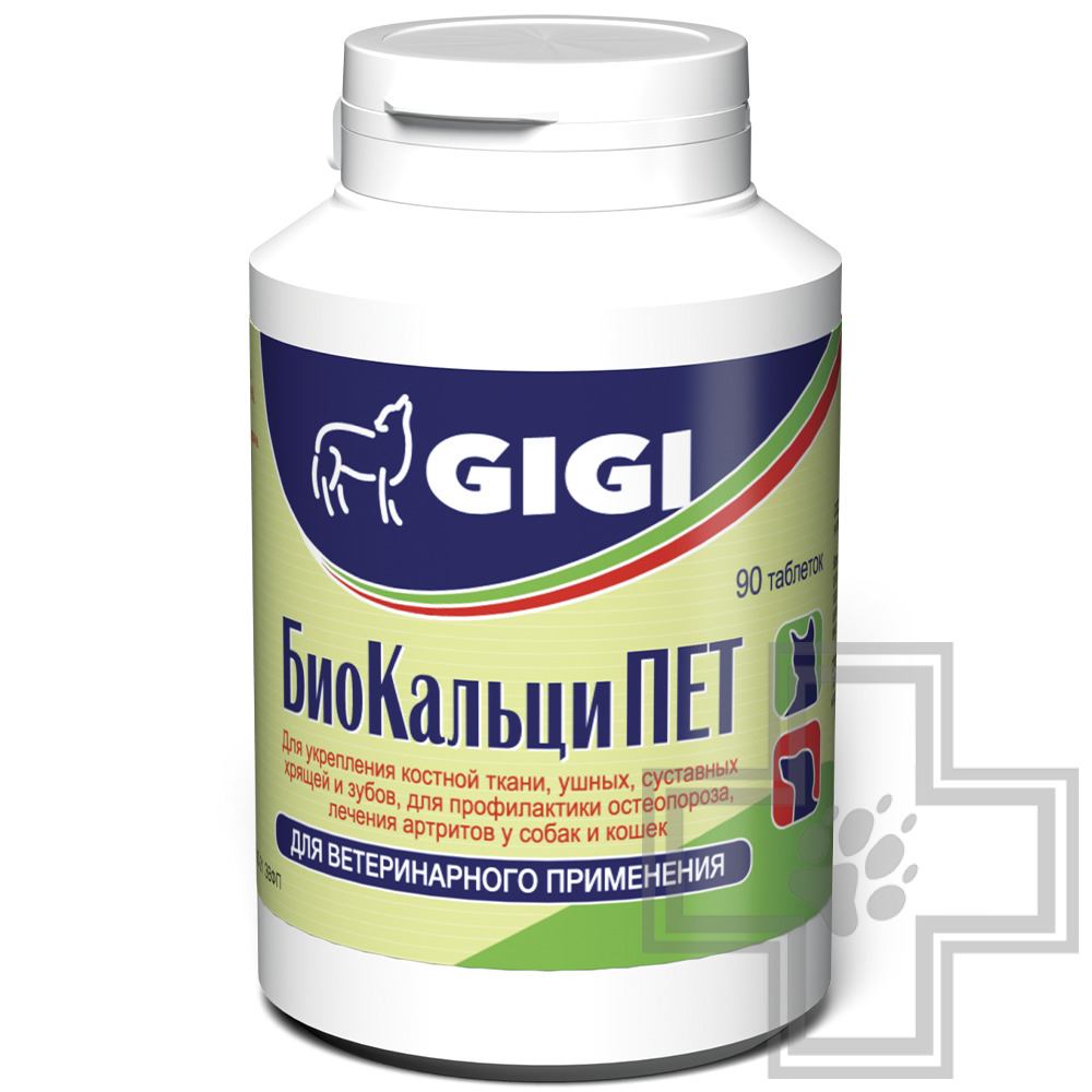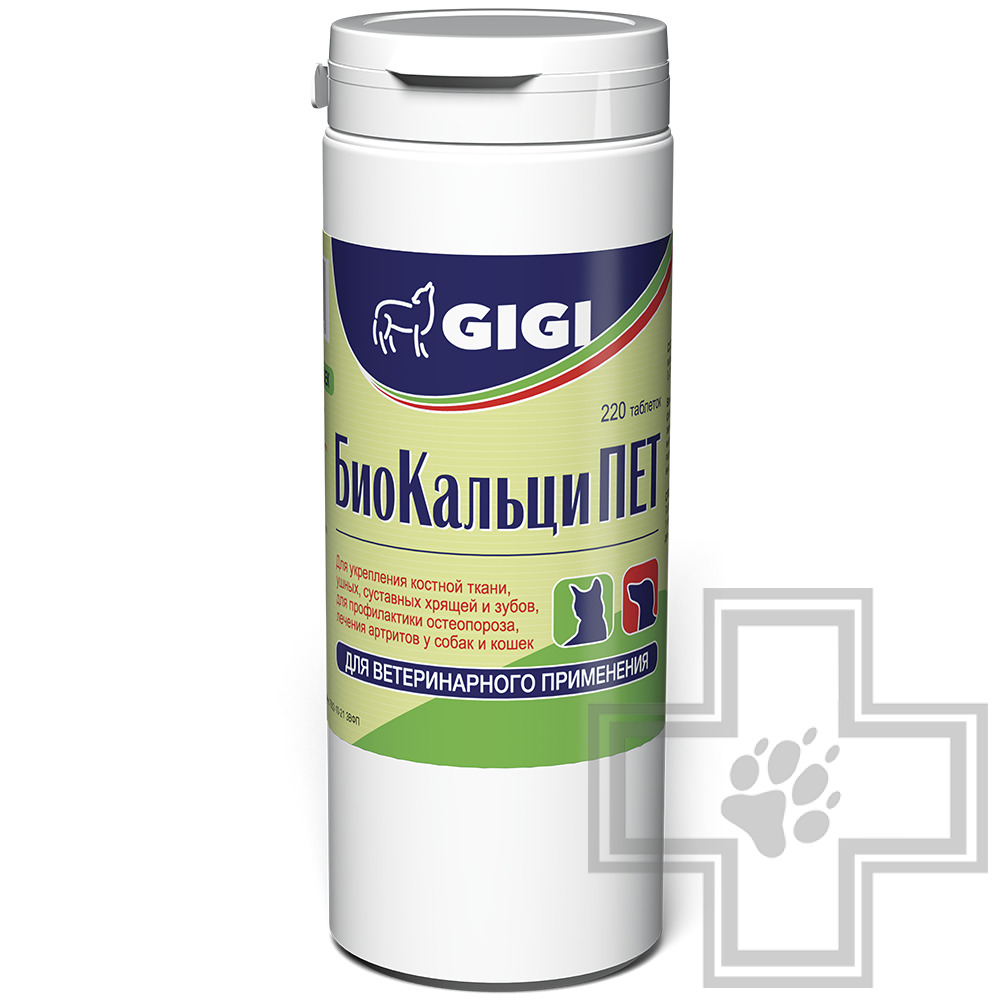 GiGi БиоКальциПЕТ – ветеринарный препарат для собак и кошек, применяется в период роста костной ткани для укрепления ушных, суставных хрящей и зубов; для лечения при переломах костей и артритах различной этиологии, а также для профилактики остеопороза.