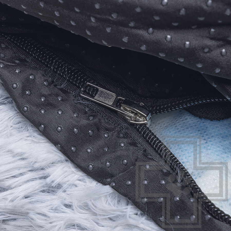 Лежанка имеет два чехла, внутренний и внешний. Внешний чехол съемный и поддается стирке при 60 градусах, а водонепроницаемый внутренний чехол для подушки можно стирать при 30 градусах, что облегчает уход за лежанкой и поддержание ее в чистоте. Дно лежанки изготовлено из нескользящей ткани, поэтому лежанка не смещается.