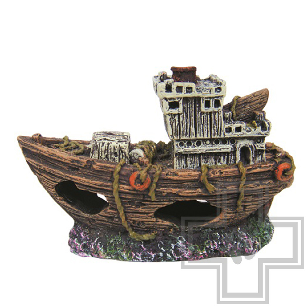 Пластиковая декорация PRIME (ПРАЙМ) «Затонувший буксир мини» подойдет для оформления аквариумов в аквариумистике и фитодизайне.