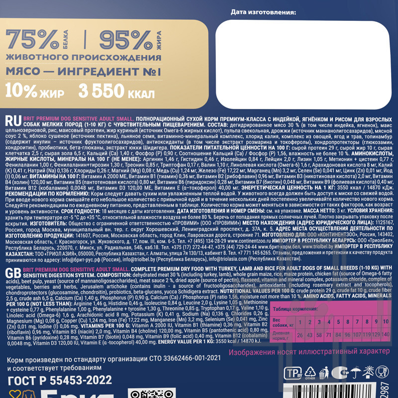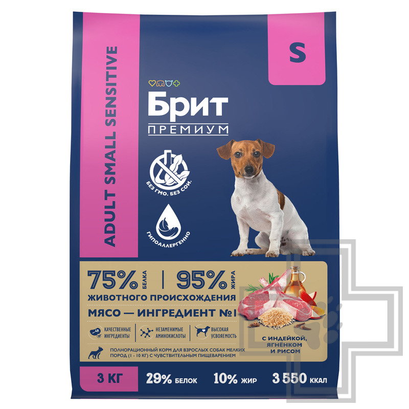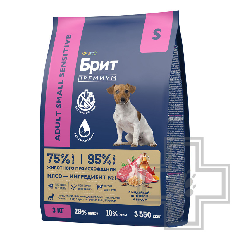 Брит Корм для взрослых собак мелких пород с чувствительным пищеварением, с индейкой, ягненком, рисом