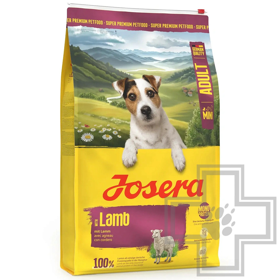 Josera Mini Adult with Lamb (MiniDeluxe) (25/17) — беззерновой корм, разработан специально для взрослых собак мелких пород, содержит много мяса ягненка, овощи, фрукты и травы, что делает его вкусным и легкоусвояемым.
