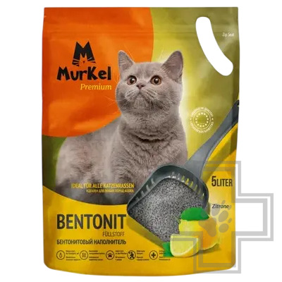 Murkel бентонитовый комкующийся наполнитель для туалета кошек с ароматом лимона в виде формованных шариков 0,8-3,5 мм, изготовленных из бентонита природного вулканического глинистого минерала, обладающего свойством поглощения запахов и разбухания при контакте с жидкостью до объёма в 14-16 раз превышающий его первоначальный.